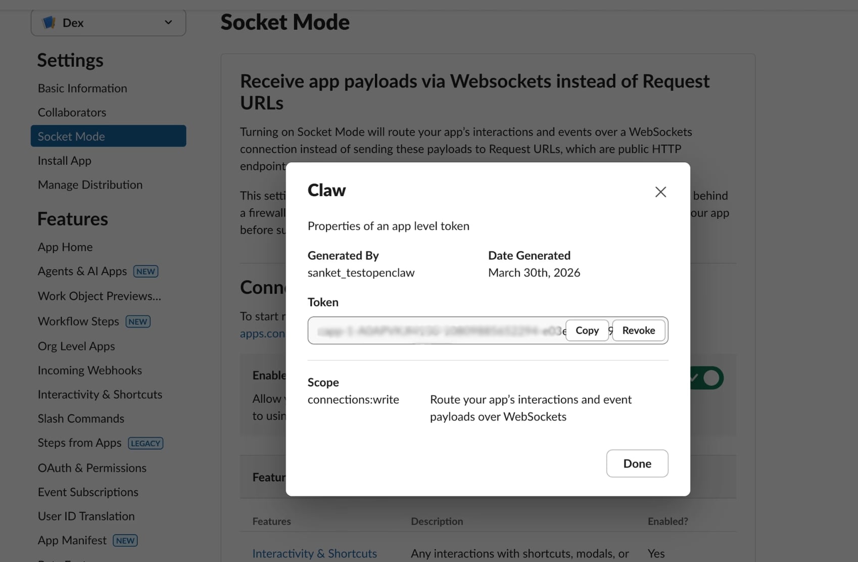 . Also enable App Home Messages Tab for DMs and check Allow users to send a message
